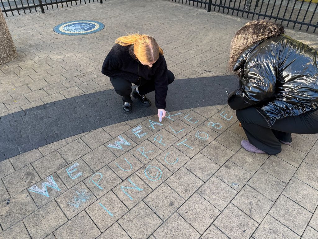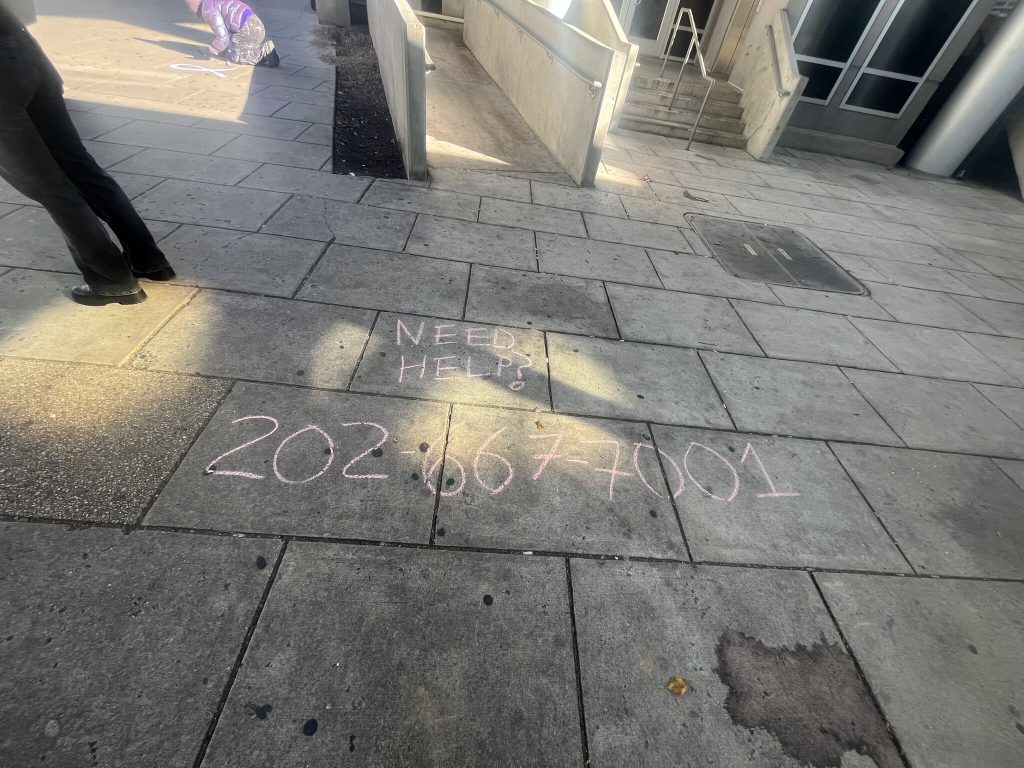 This year, House of Ruth proudly joined My Sister’s Place and Deaf DAWN at the NoMa and Columbia Heights metro stops. With outreach materials and colorful chalk, we left inspiring messages on the sidewalks—symbols of encouragement for survivors and reminders to everyone passing by that they were not alone.