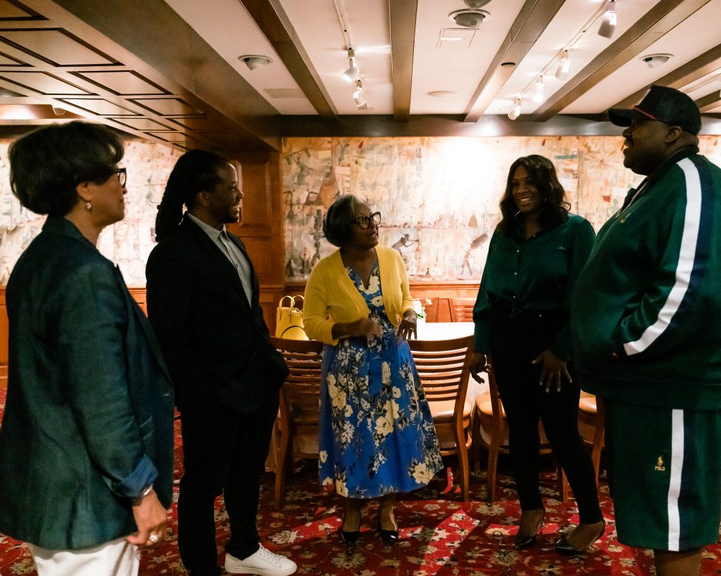 In a private room above the stage of The Hamilton Live, Michael and Tanya reunited with House of Ruth’s President & CEO Sandra Jackson and fellow staff. Following warm embraces, The War and Treaty presented House of Ruth with a $25,000 check—the winnings from their recent victory on Celebrity Family Feud.
